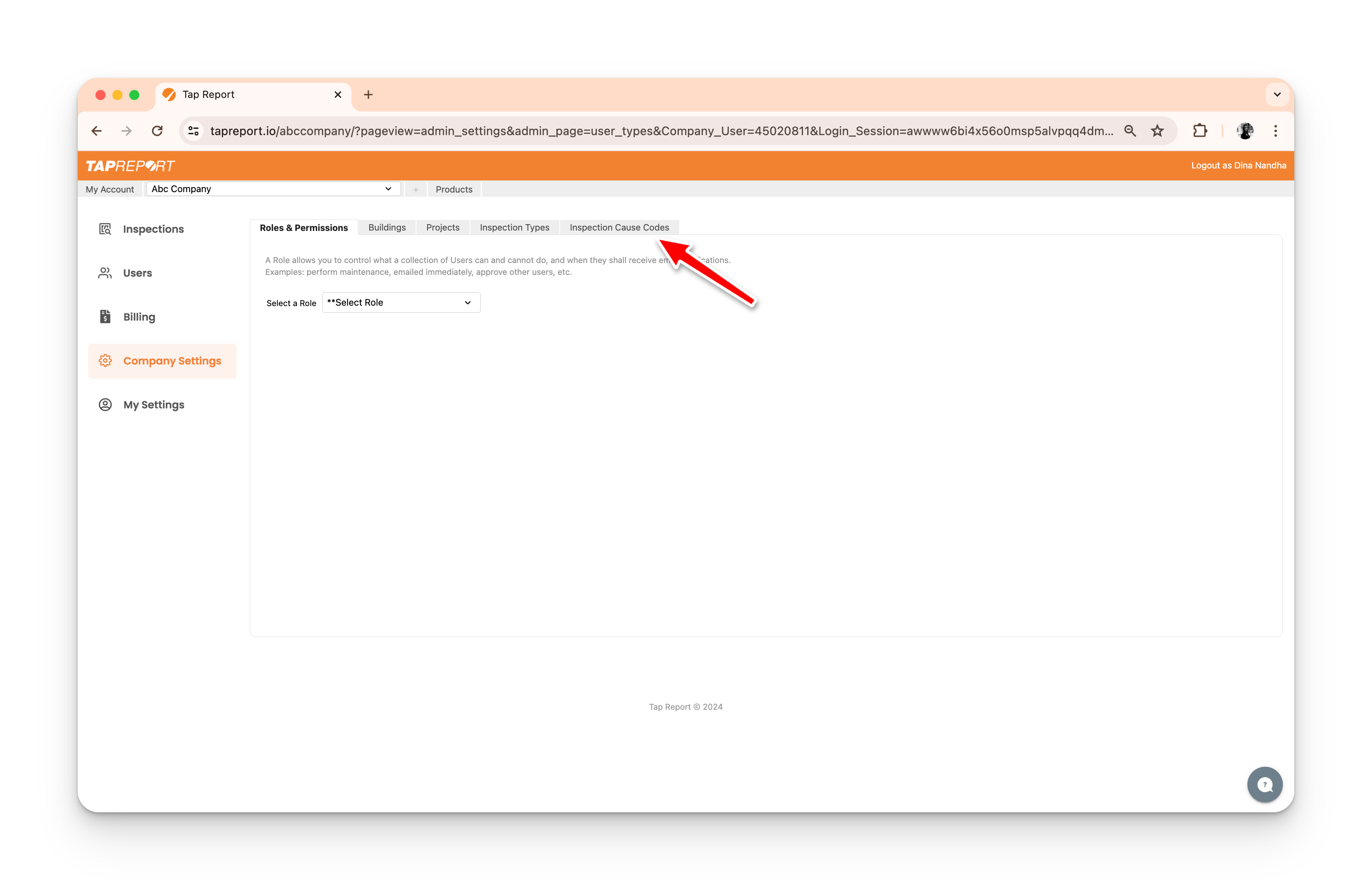- From your logged-in Administrator account, click on Company Settings in the side bar and open the Inspection Cause Codes tab on the far right of the page.