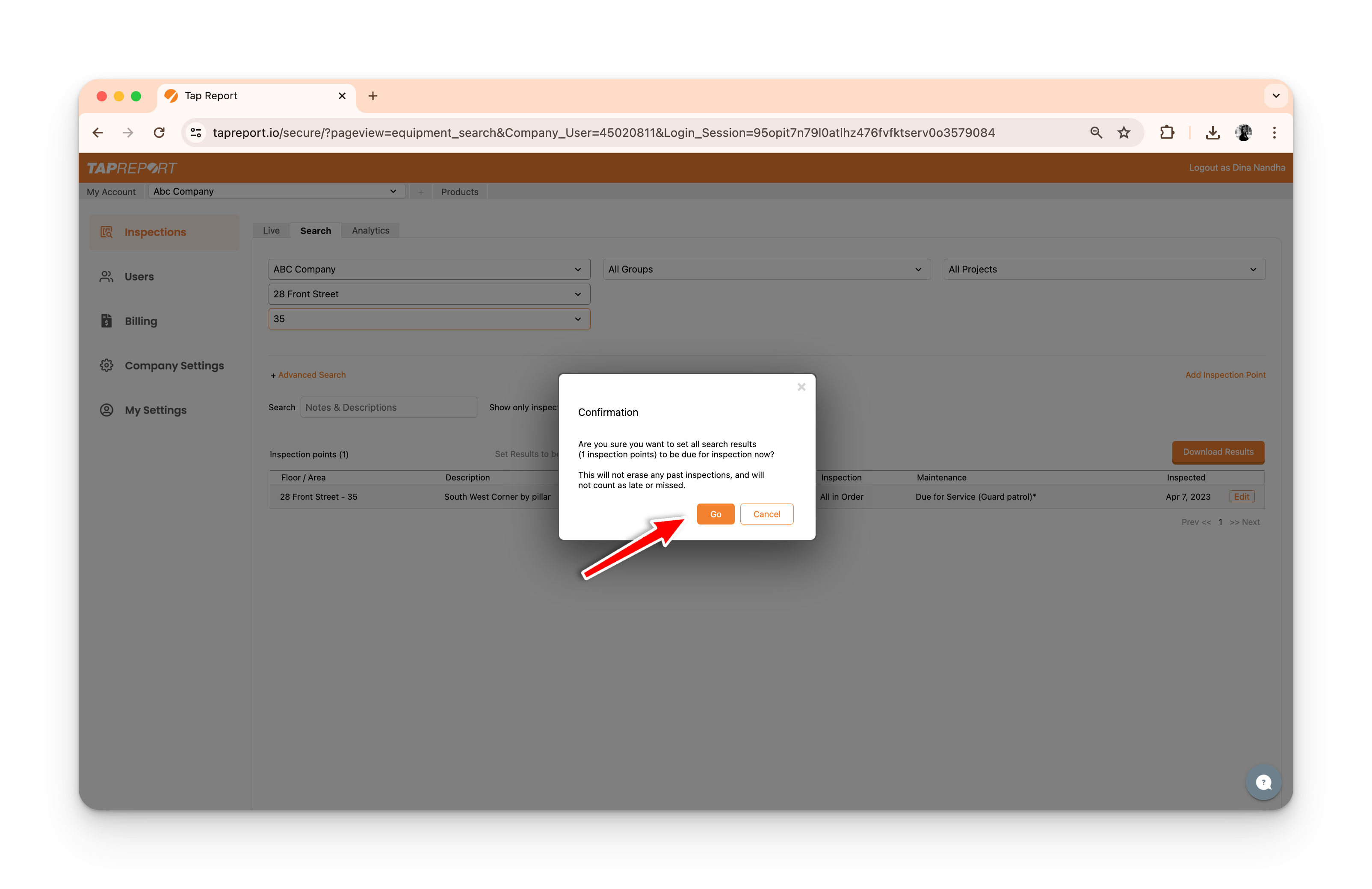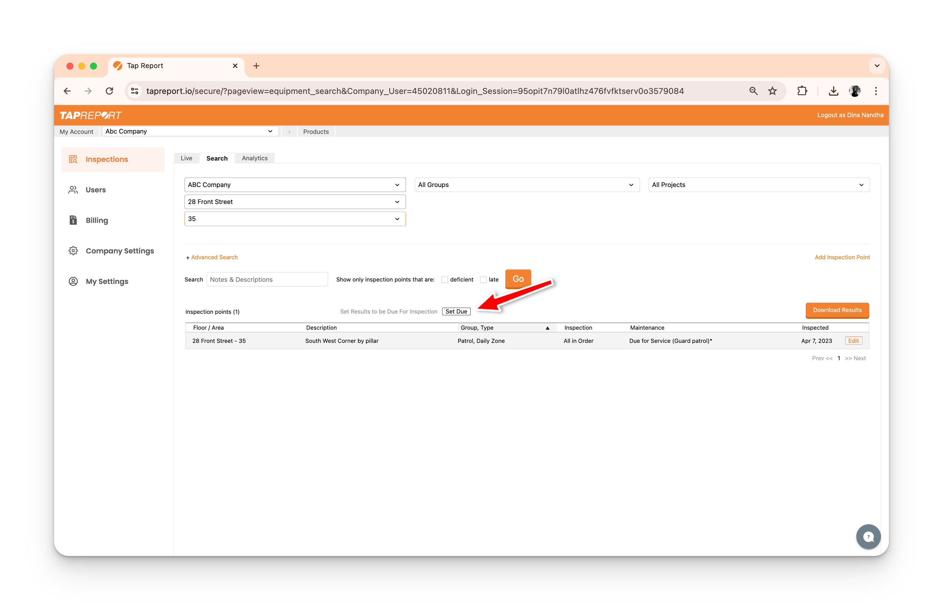 - From your logged-in account, press Inspections > Search