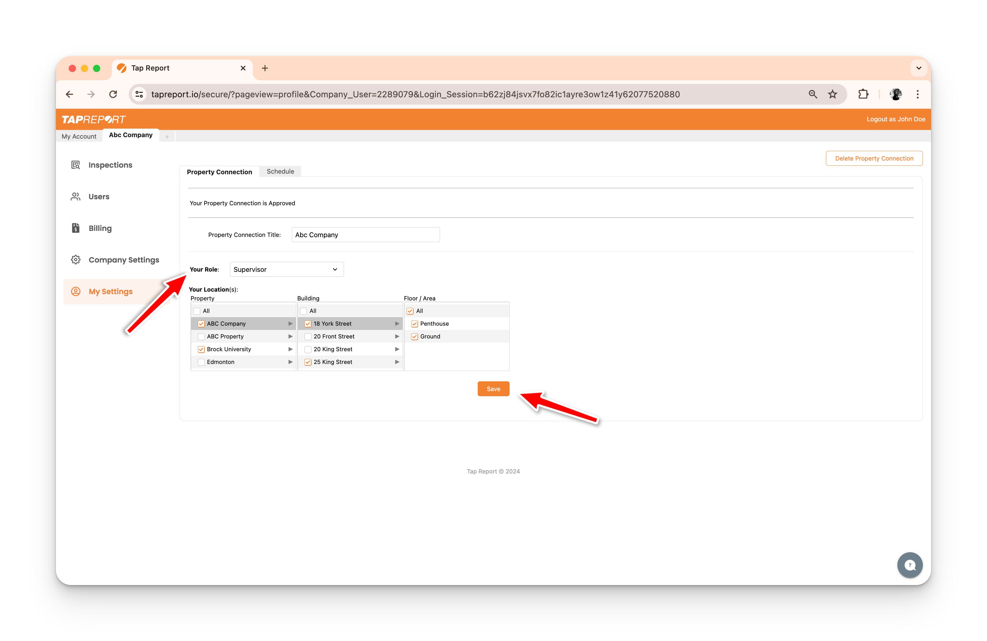 1. From your logged in account, click on the Property Connection tab (excluding the My Account tab) where you’d like to change your Role