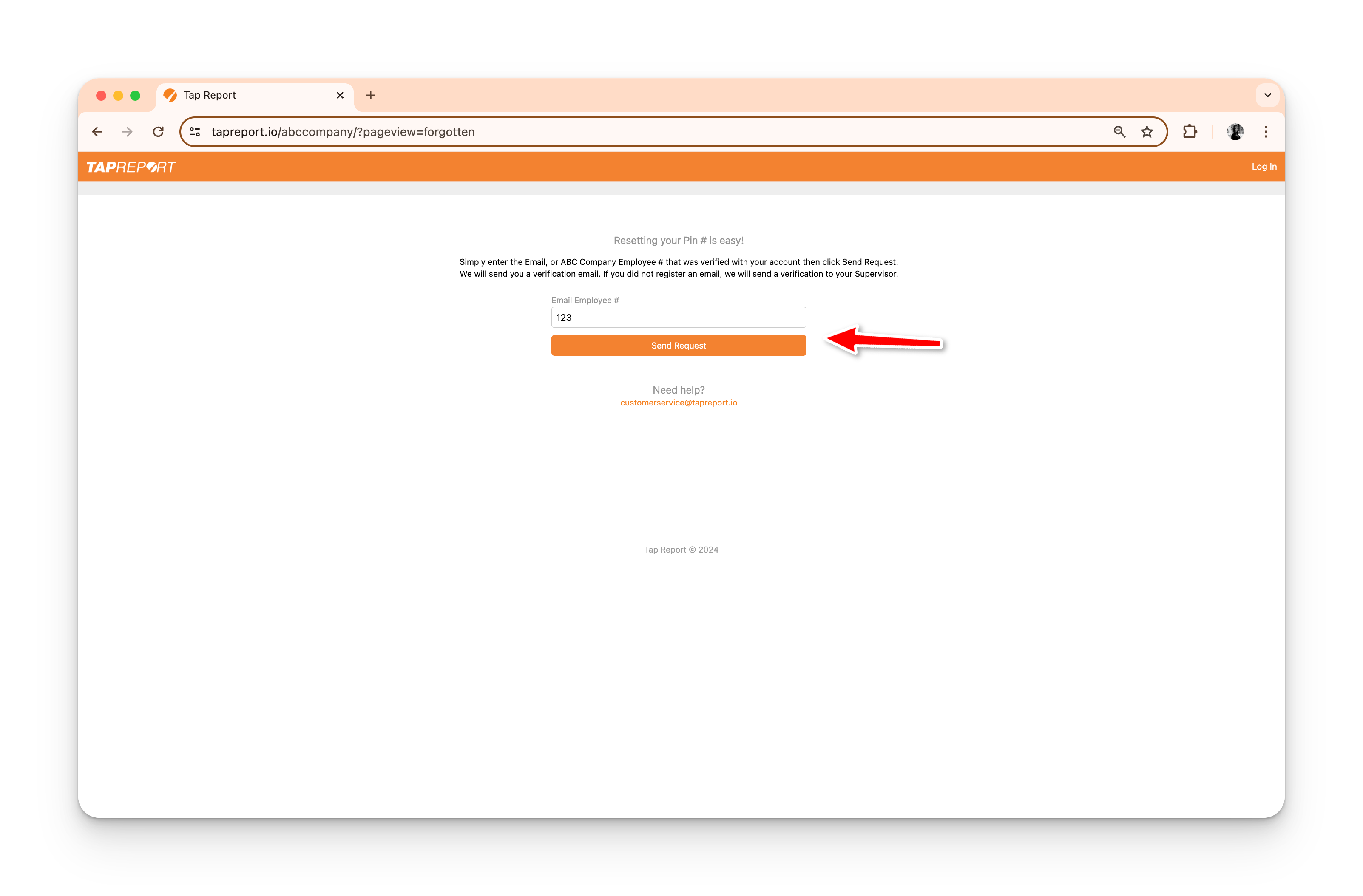 1. Go to your company URL – tapreport.io/<your-company>