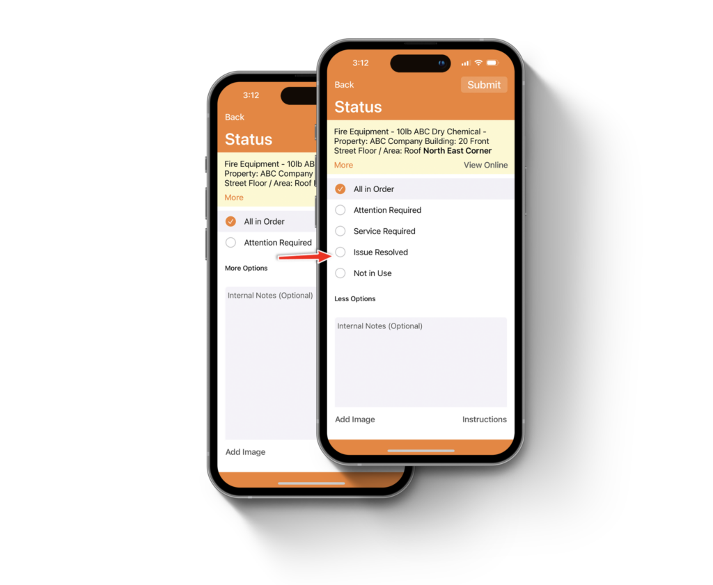 “Issue Resolved” is a shorthand way of submitting as “Attention Required” followed by submitting as “All in order”. Think of it like a 2-in-1 inspection. If the Inspector only marked it as “All in order”, there would be no record of the issue occurring. This is handy for issues that can be corrected at that moment, but still want to be noted. For example: