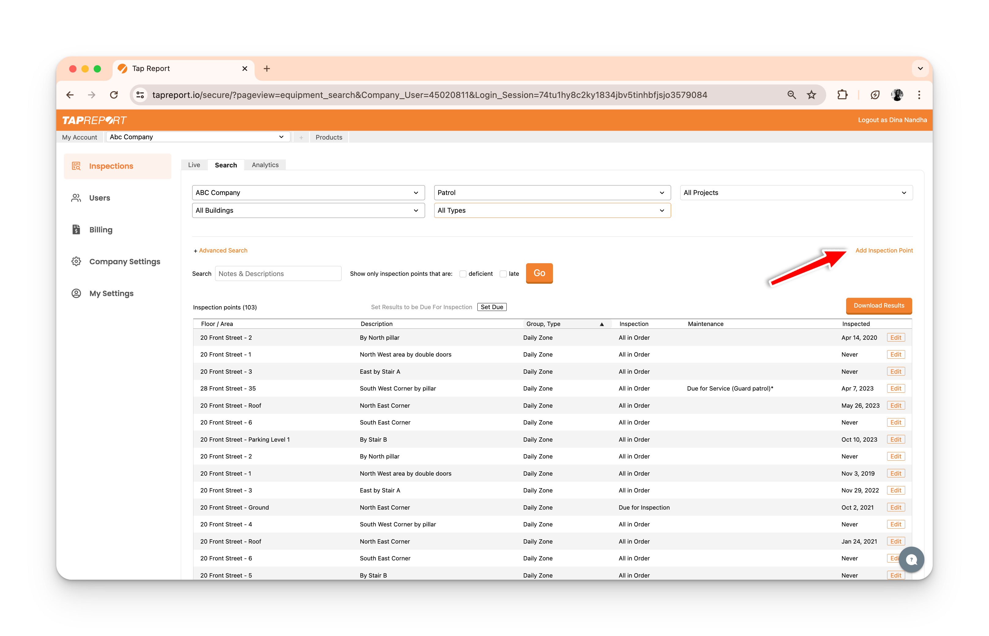 Choose to “link” the inspection point online with a physical Smart Tag by logging in on the app and using the Replace Smart Tag feature.